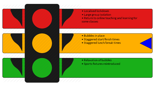 Caversham Prep operates a traffic light system and the COVID-19 guidance for parents will change depending on where the school is within this system.